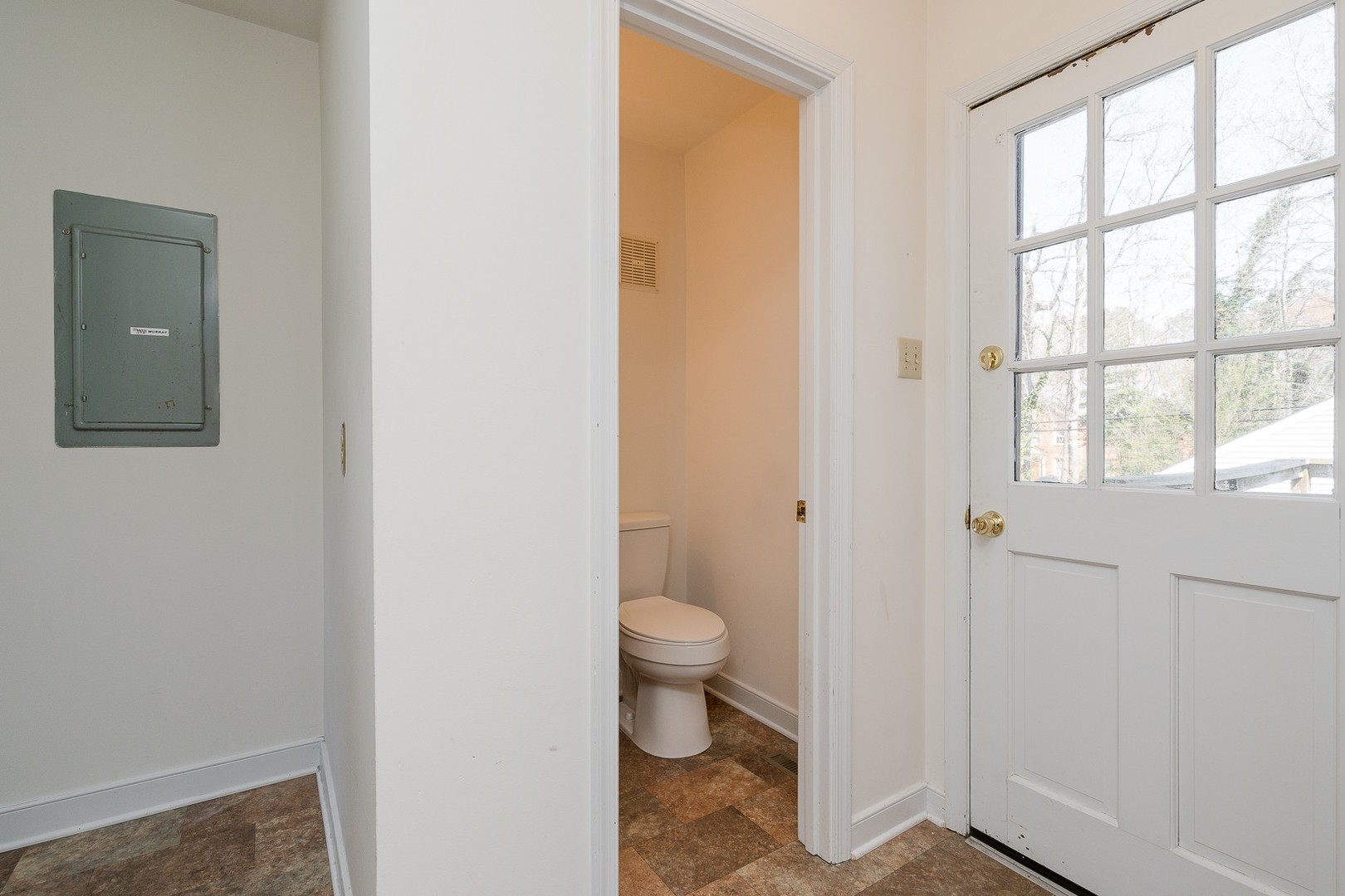 1 full bath (upstairs hall) , and two 1/2 bathrooms. One in primary bedroom, and one in utility room on first floor