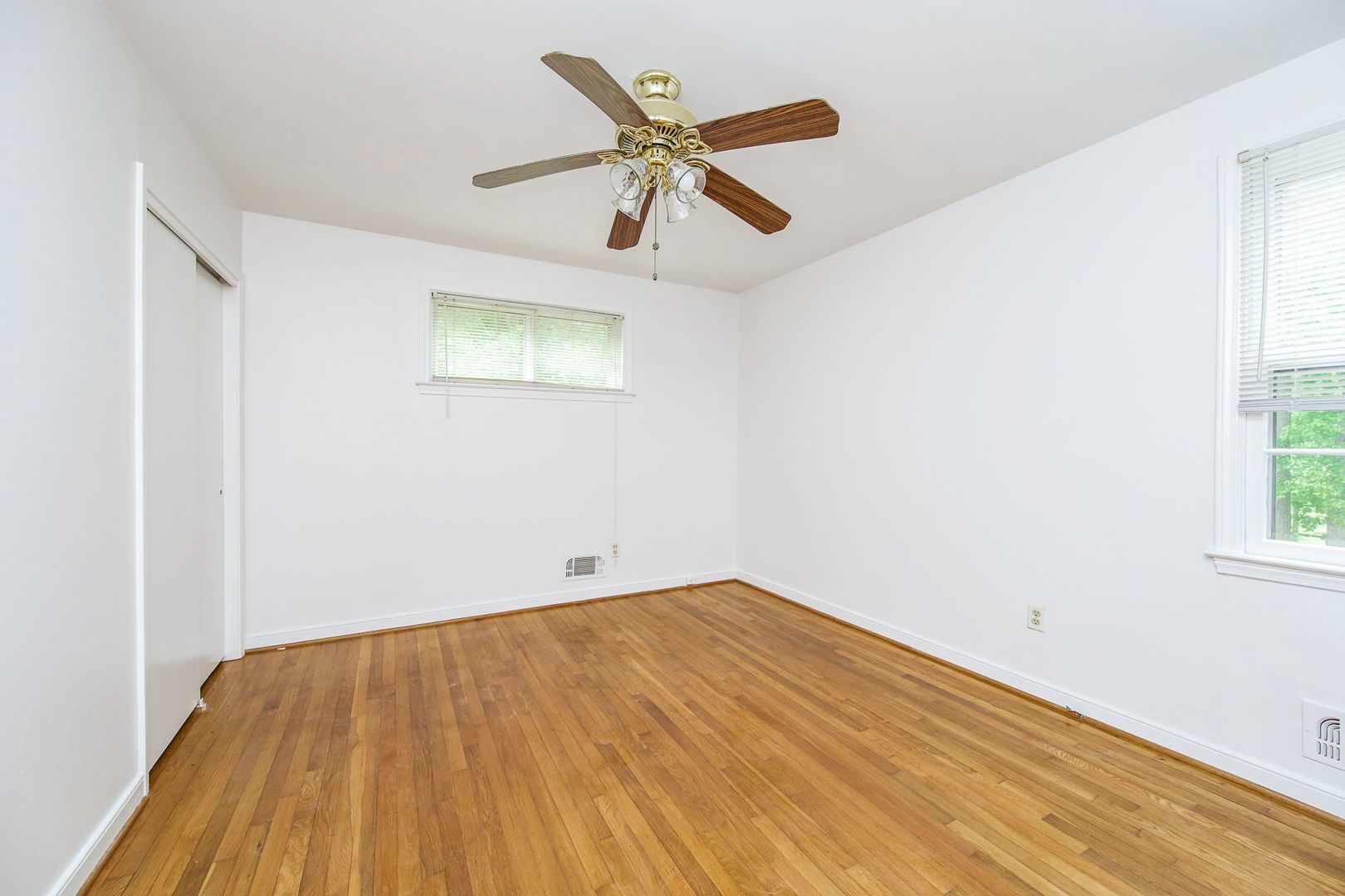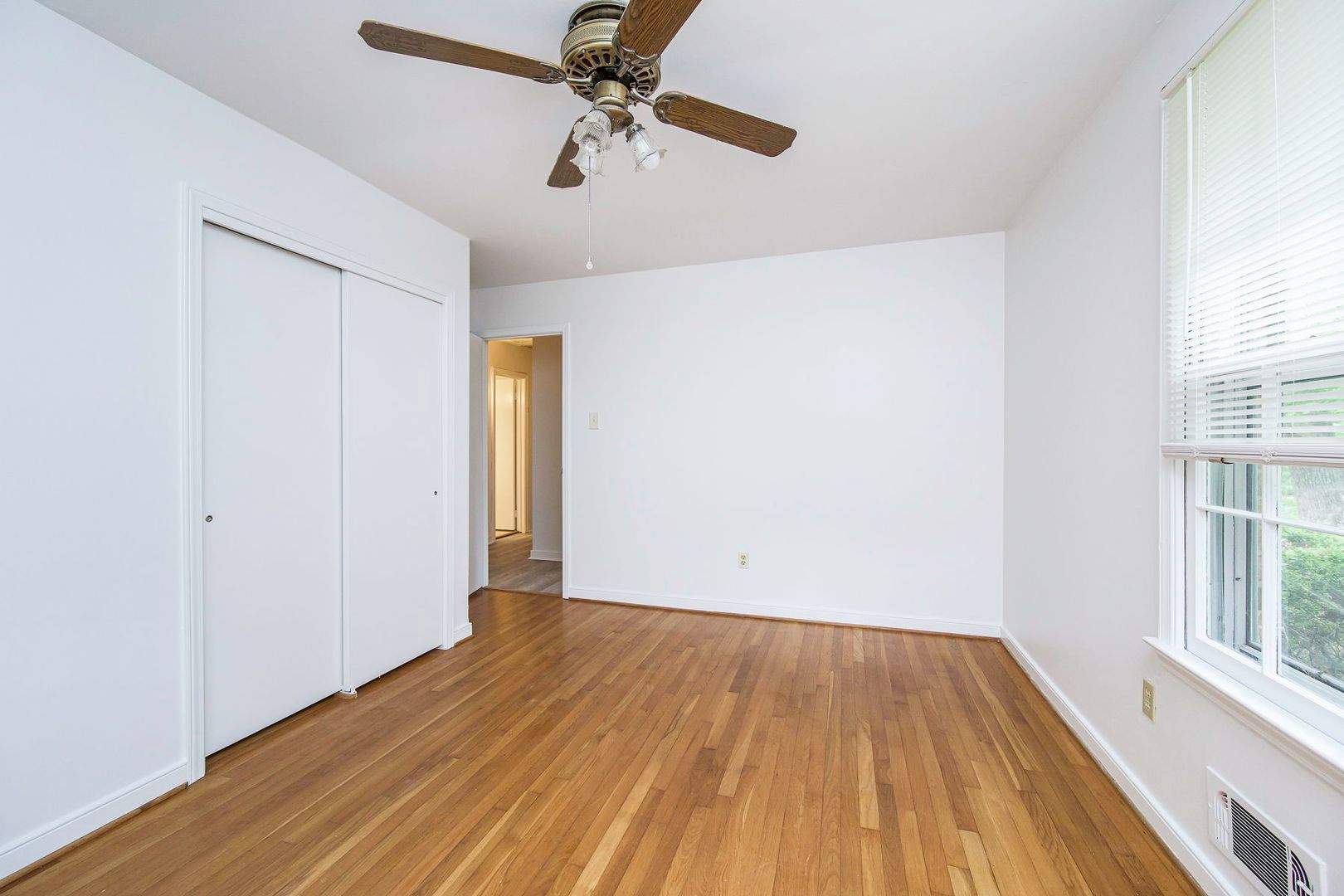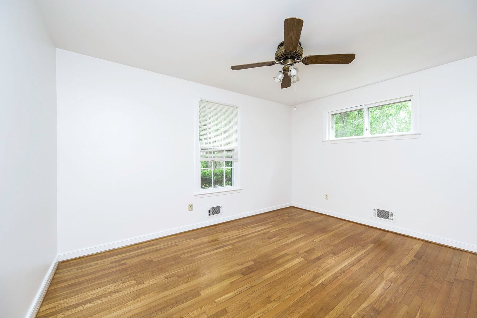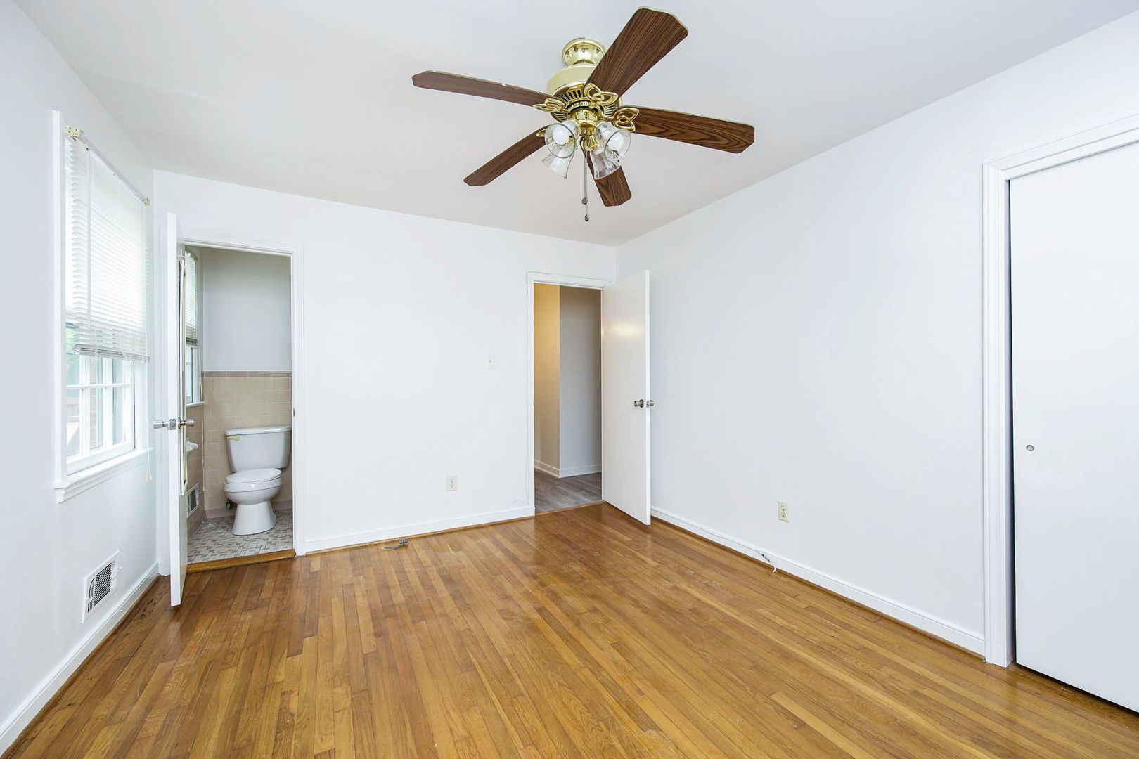 All bedrooms are generously sized with beautiful hardwood flooring, ceiling fans, and great natural light. The bathrooms are clean and well-maintained with classic finishes.